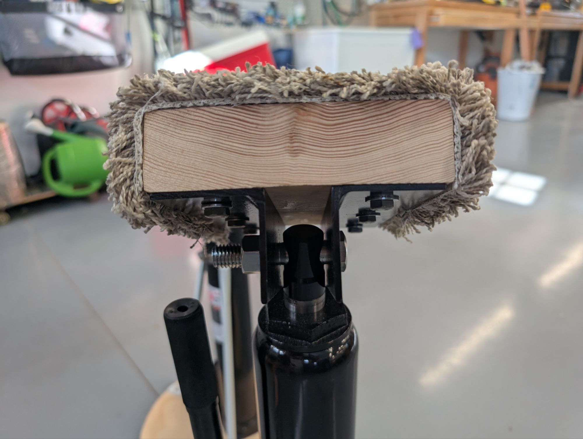 I then made two support pads from some scrap lumber and angle iron.